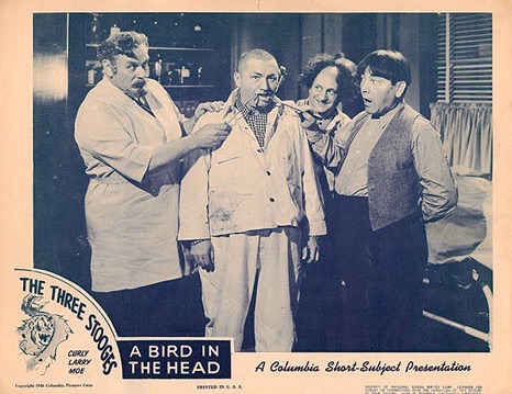 Moe (Moe Howard): A bird in the head is worth two in a bush.