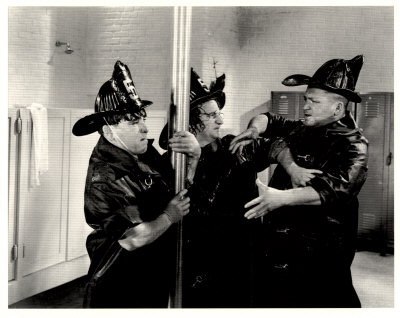 Flat Foot Stooges is an early Three Stooges short film that has Moe, Larry and Curly working as firefighters. Their main job is their preoccupation with getting their horse-drawn fire engine cleaned and ready for a contest. They not only clean the fire engine, they groom the horses – after taking them out for a steam bath. While they are out, an unscrupulous salesman is trying to get the fire chief, played by classic silent film actor Chester Conklin, to look into purchasing a new fire engine that doesn’t need horses. Fire Chief Chester Conklin isn’t interested. So the salesperson decides to get a little revenge by planting a bomb in the fire engine. The chief’s daughter catches him in the act. While he tries to talk his way out of the situation, a duck waylays his plans.