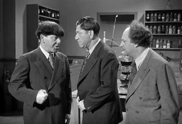 Larry Fine: Say, I beg your pardon, do you have any idea what we’re doin’?