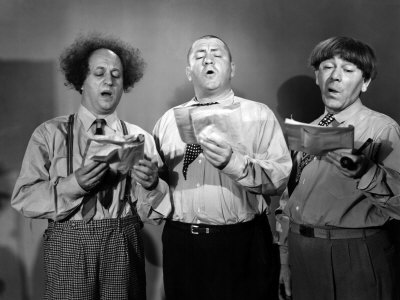 In a nutshell, in the Niagara Falls routine, a bum (played by Moe), tells his sad story to Curly, about how a stranger (played by Larry) stole his wife and ruined his life, and how Moe pursued him around the world, finally catching up to him in Niagara Falls, where he gets his revenge on Larry. Which he acts out upon poor Curly! Apparently, whenever Moe hears “Niagara Falls” he goes into a maniacal rage, attacking the person who said it. After Moe walks off stage, Larry walks on, and tells his side of the story, acting out his actions on Curly. Moe walks back on, and Curly waits to see Moe and Larry fight – only to have them shake hands; after all, you can’t live in the past! Until, of course, Curly mentions Niagara Falls, and both Moe and Larry attack him!