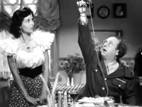 In Love at First Bite, the Three Stooges — Moe, Larry, Shemp — are preparing to welcome their overseas fiancees, decorating their apartment. Shemp keeps “gumming up the works” by leaving his used chewing gum everywhere — telephone receiver, etc. leading to the typical mayhem. Between the slapstick, they reminisce about how they met their respective girlfriends while they were in the military during World War II: