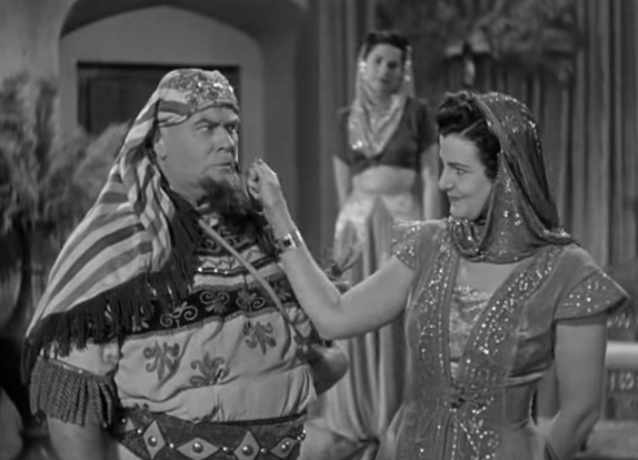 Vernon Dent getting his cheek pinched by the slave girl in the Three Stooges short, Mummy’s Dummies