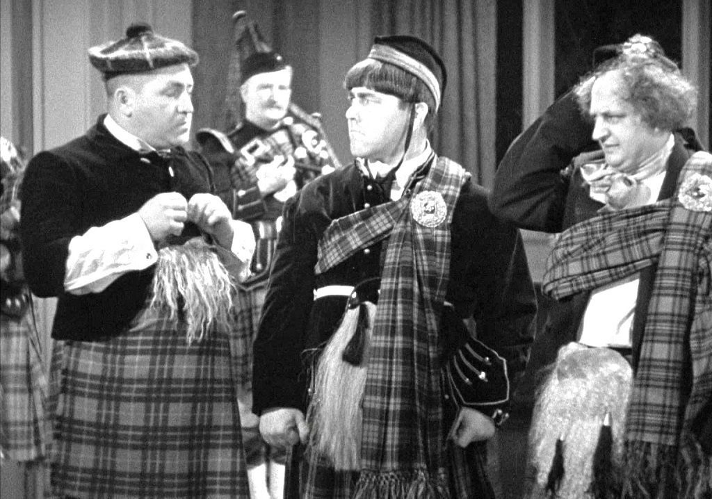 Moe (Moe Howard): We ain’t much on the Highland Fling, Lady, but sure knock ’em dead with our Lowland Shin.