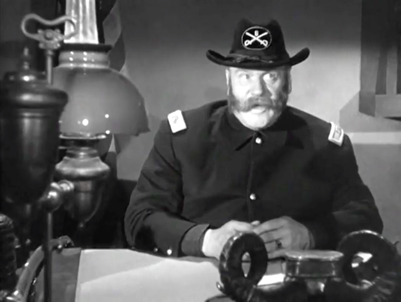 One other thing is the raw number of Three Stooges regulars who show up in Punchy Cowpunchers — even for a brief appearance. Dick Wessel is their sergeant, whom the boys accidentally abuse. Emil Sitka is the captain, who Dick accidentally abuses. Vernon Dent is the colonel who can’t send the cavalry to help. After all, it’s payday, and “boys will be boys”. And of course, Kenneth MacDonald as the villainous Dillon.