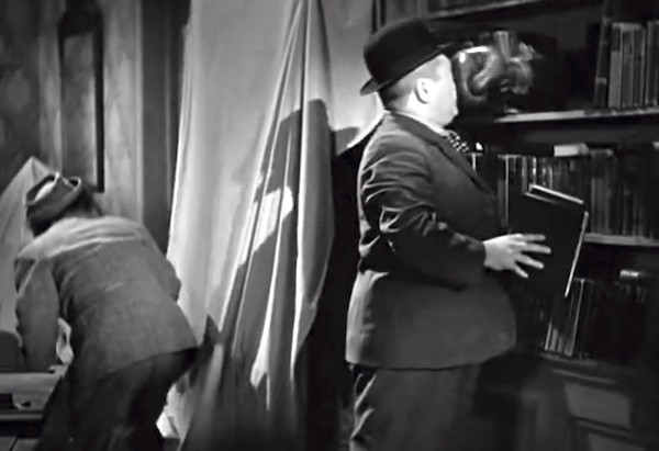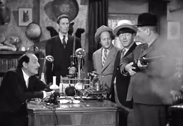 Spook Louder - the Three Stooges (Larry, Curly, Moe) hold off the spies with a bomb