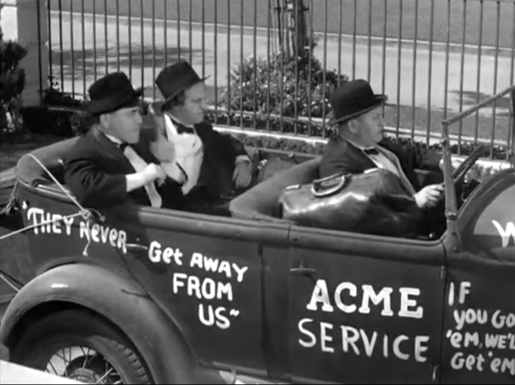 Moe, Larry and Curly: At yer service, day or night, we do the job and do it right … Acme!