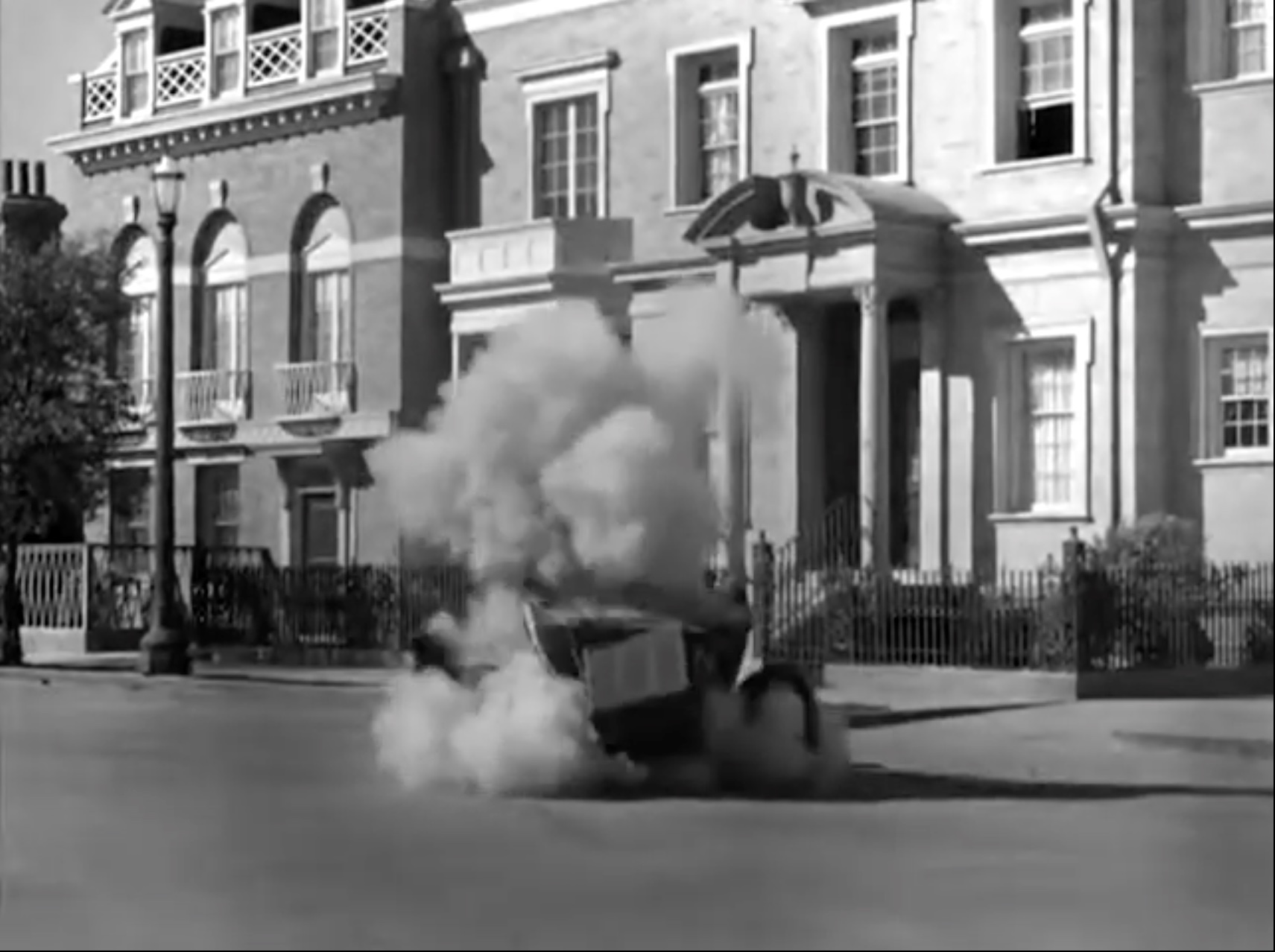 Shortly afterwards, the hostess’ husband returns from his hunting trip, and decides to dispatch the Stooges with one of their own ‘gopher bombs’ that they conveniently left behind as they flee in their battered car. A well-aimed toss of the bomb blows up the car, leaving the Stooges to scamper from the wreckage and head for the hills. A funny Three Stooges short film, possibly not their funniest, but very funny and well worth watching. I rate it 3 clowns out of 5.