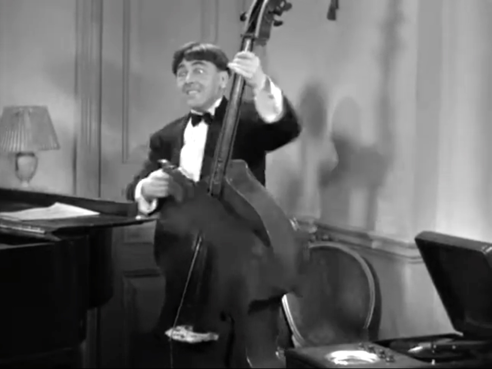 Soon everybody is doing likewise so as not to offend Lord Wafflebottom. This is a highlight of the film, and should be seen to be appreciated. After the dinner, the Stooges decide to entertain musically, with Moe playing a cello – with a saw. When he saws the cello open, mice pop out, the female guests leave screaming and the ‘exterminators’ try to get to work.
