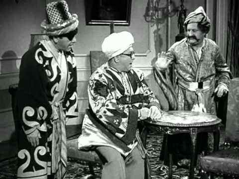 Moe (Moe Howard): The raja says that in his domain on the islands of Coney & Long there are some fair chickadees who prowl through the meadows day & night. If you give us till sunup, we shall bring some back by sundown.